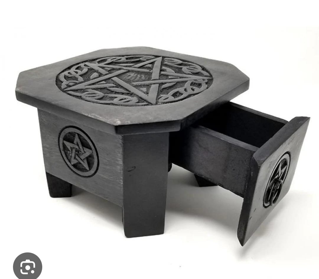 The Altar Table is a sacred space designed for rituals, and meditation. Crafted with care, it serves as the perfect foundation to hold candles, crystals, incense, cauldrons, or other ritual tools.
